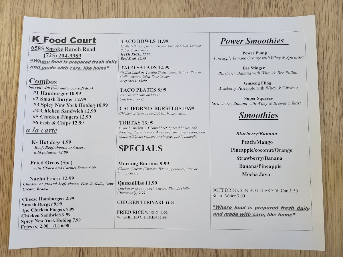 Welcome to K Food Court, a hidden gem located at 6595 Smoke Ranch Rd # 105, Las Vegas, NV 89108. This vibrant eatery is rapidly becoming a favorite among locals, providing a unique blend of flavors that cater to diverse tastes. With a phone number of +1 725-204-9989, it’s just a call away for those looking to indulge in delicious, affordably priced meals.
